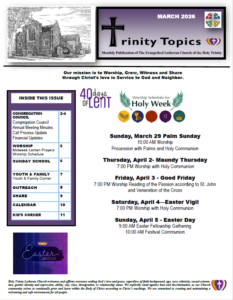 Sunday Worship Services are livestreamed at 10:00 AM on our Facebook page and shown on our website homepage that day. Communion is a part of our services. If you would like to receive communion elements to participate with us, please email us htluth@comcast.net or call the office at 717-533-2467 and leave a message.